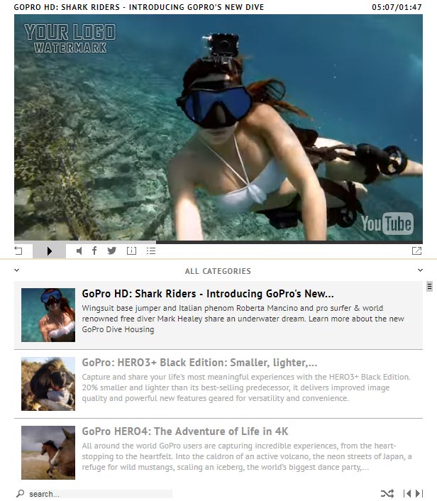 HTML5 Video Player with Playlist & Multiple Skins – $17 value